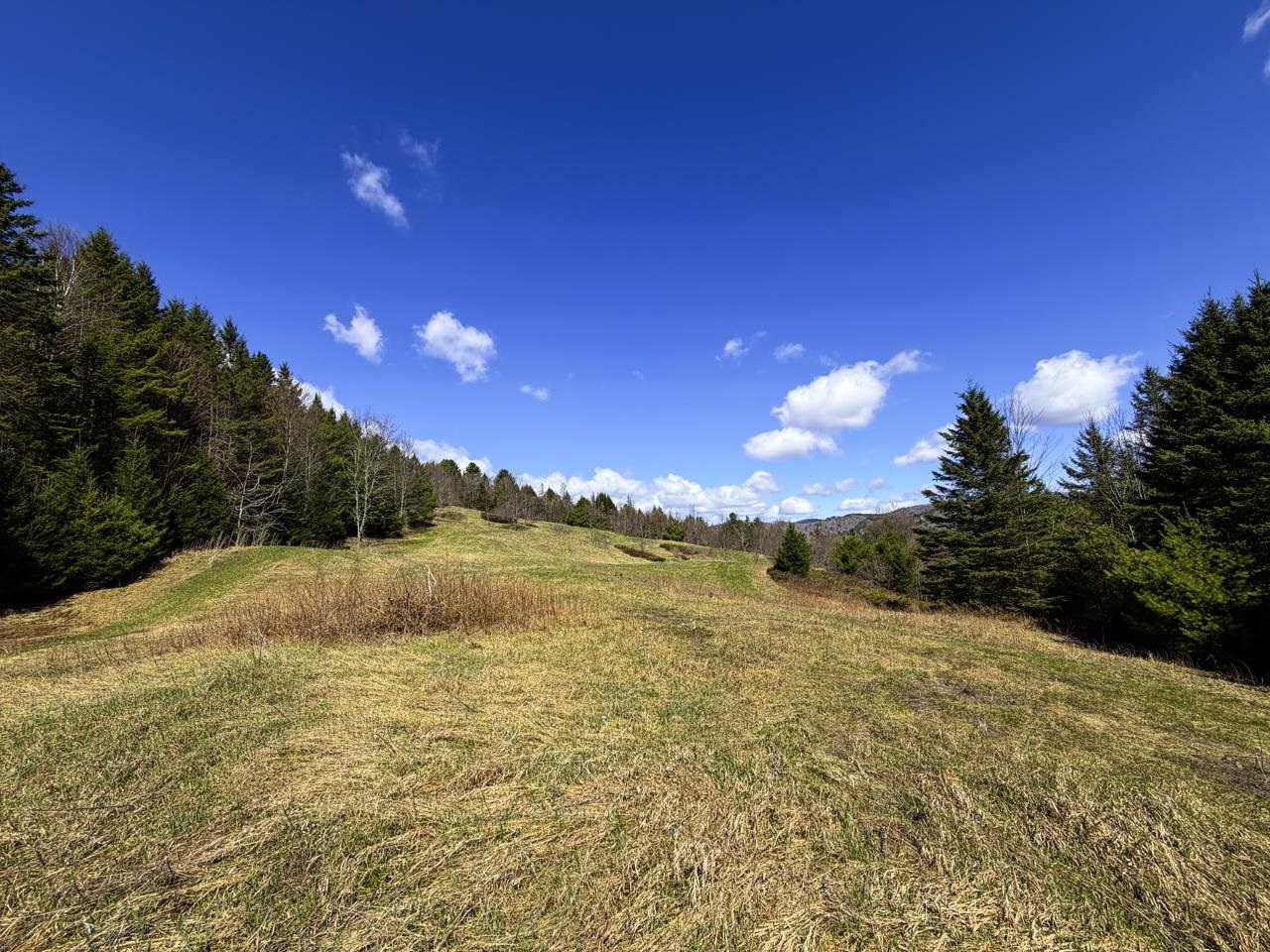 Stunningly gorgeous mostly cleared mountainside lot with big views, legacy apple trees, ATV trails and a super private house site at the very top of the lot hidden in the woods. A gravel pad at the bottom just off of Route 25 where you could put a barn or garage launching station and keep your AC/Heated 4 Wheeler to climb the trails and get to a potential camp at the top or, even better, year-round home. 4BR McCain in-ground septic design done, state WW permit app in gear. A small wet spot half way up the hill may be a spring. Stream crosses the NW corner just above Rt 25 for potential pond site water supply. As if all that weren't enough, this lot abuts the Northeast Slopes ski area 50 acres. Hike or ski through the woods and right down to the T bar and up again. Just celebrated it's 90th anniversay, this micro ski area is sure to please and provide friends and family the ultimate intimate Vermont experience. Family season pass for just $315, day tickets a whopping $15. Whoa! How about putting in your own pomma lift and founding your own ski resort? Get your excavator, architect and telemark skis ready. Absolutely magical. 911 address is estimated, tbd once a driveway permit is applied for.